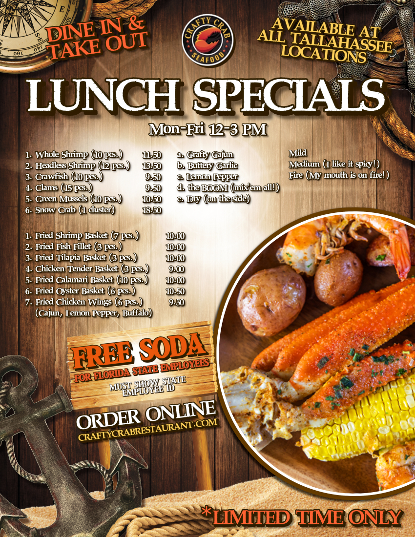 At Crafty Crab Apalachee Pkwy, the menu offers a delightful variety of fresh seafood and bold flavors that make it a local favorite. Whether you’re in the mood for succulent crab legs, tender shrimp, or a zesty Cajun-inspired dish, the options are sure to satisfy. The focus is on vibrant, flavorful meals served in a relaxed, casual atmosphere, perfect for a night out with friends or a family gathering. With something for every seafood lover, from spicy boils to crispy fried selections, you’ll find just what you’re craving. The combination of fresh ingredients and expert seasoning ensures that every bite is packed with flavor. Explore the Crafty Crab Apalachee Pkwy Menu, where every dish promises a satisfying and memorable experience.