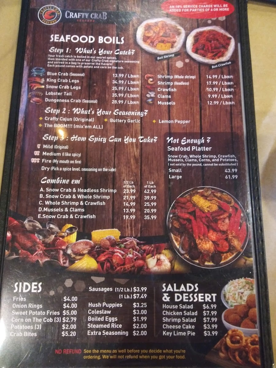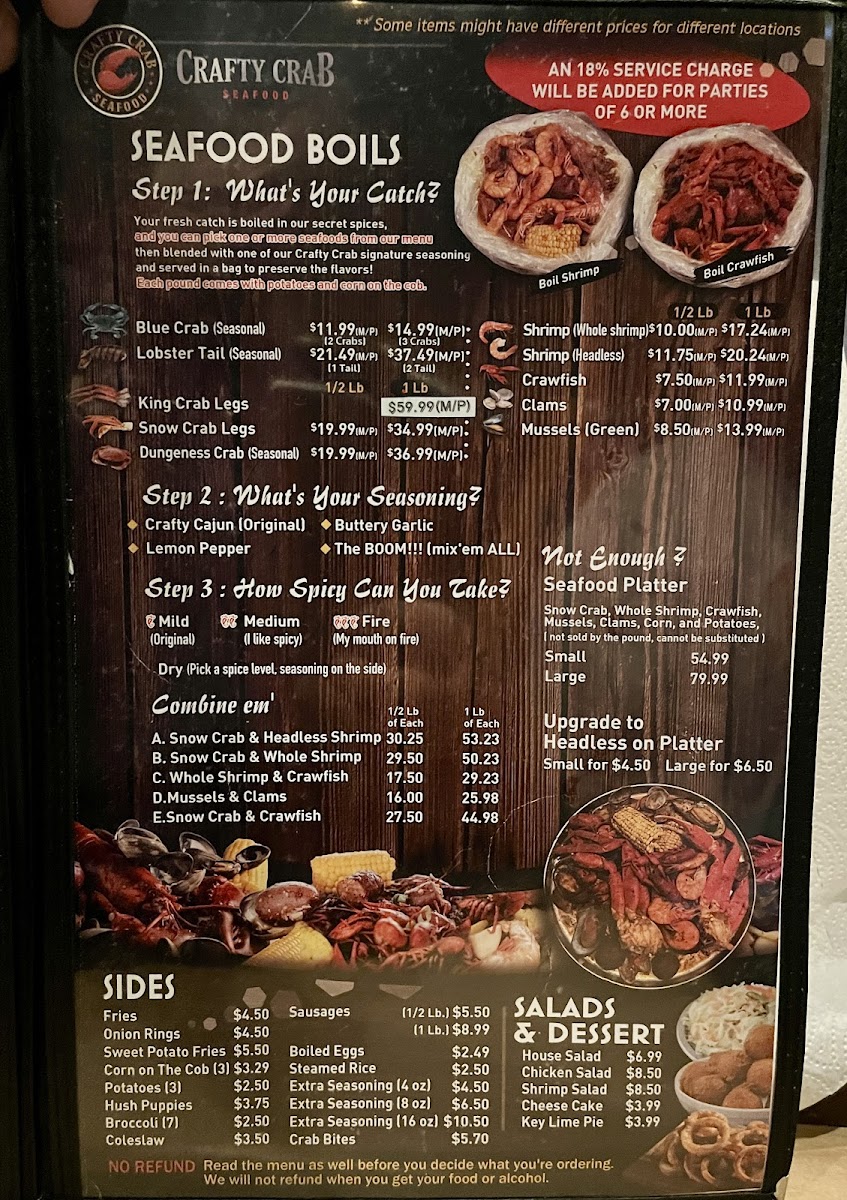 Snow crab, whole shrimp, crawfish, mussels, clams, corns and potatoes. Not sold by the 1 lb., cannot be substituted.